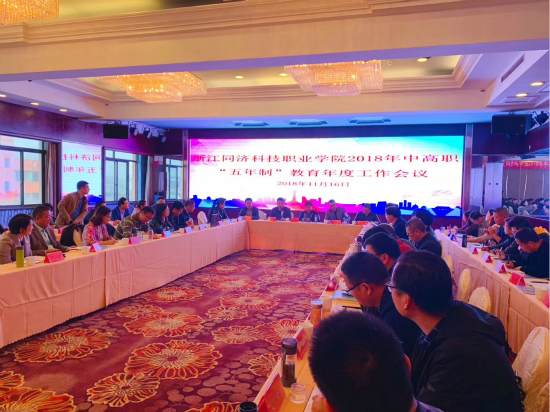 学院教务处楼骏副处长布置了2016级“五年制”中职升高职考核选拔考试工作;招生与就业指导处金永琪处长总结学院近几年“五年制”工作开展情况、取得成绩,以及学院2018年招生情况和近三年人才质量培养状况,并布置下阶段重点工作。