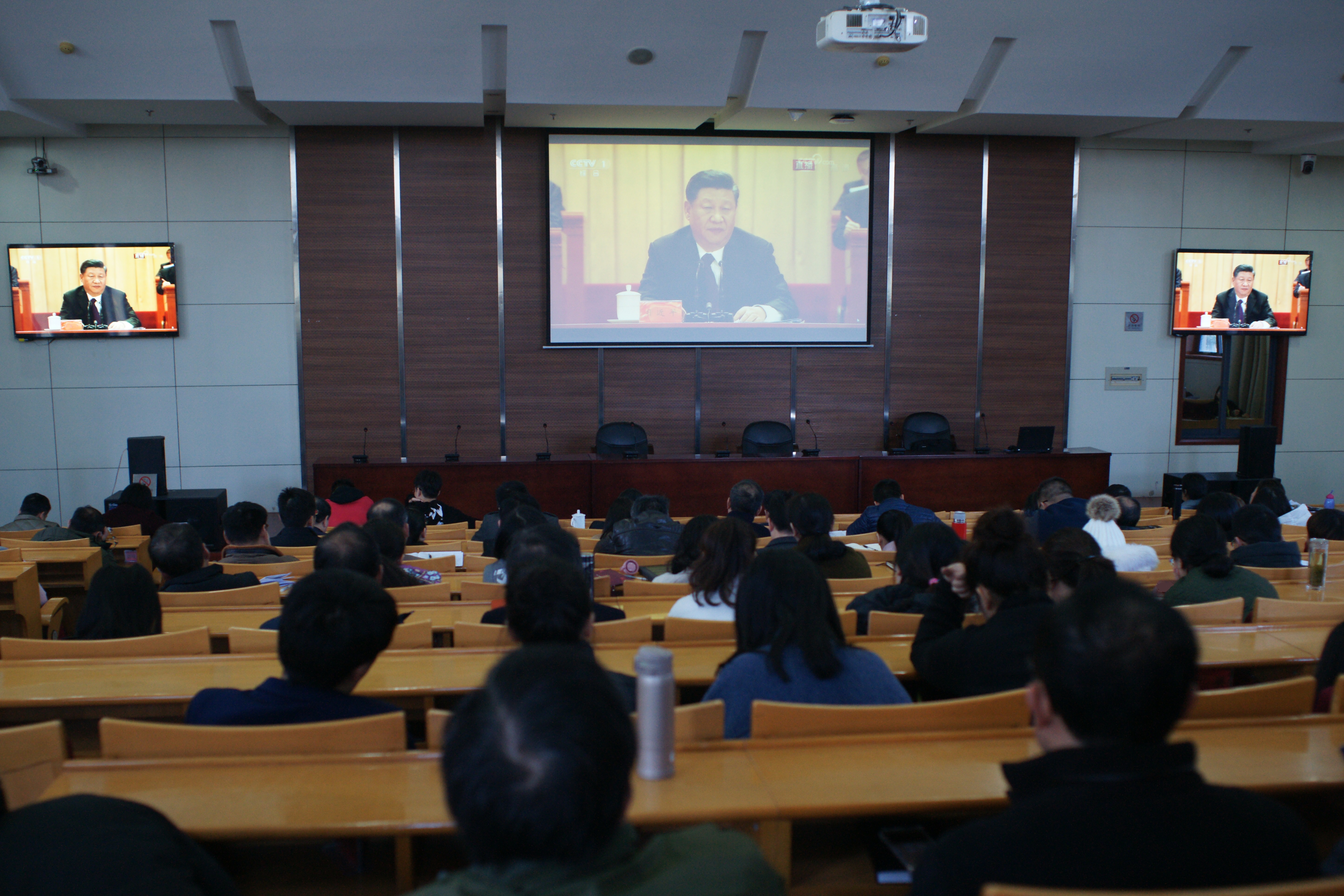 12月18日,庆祝改革开放四十周年大会在人民大会堂隆重举行。中共中央总书记、国家主席、中央军委主席习近平出席大会并发表重要讲话。我院积极组织师生收听收看。学院党政领导、师生代表等200余人齐聚行政楼一楼报告厅集中收看大会直播。未能到场的师生自行组织观看。