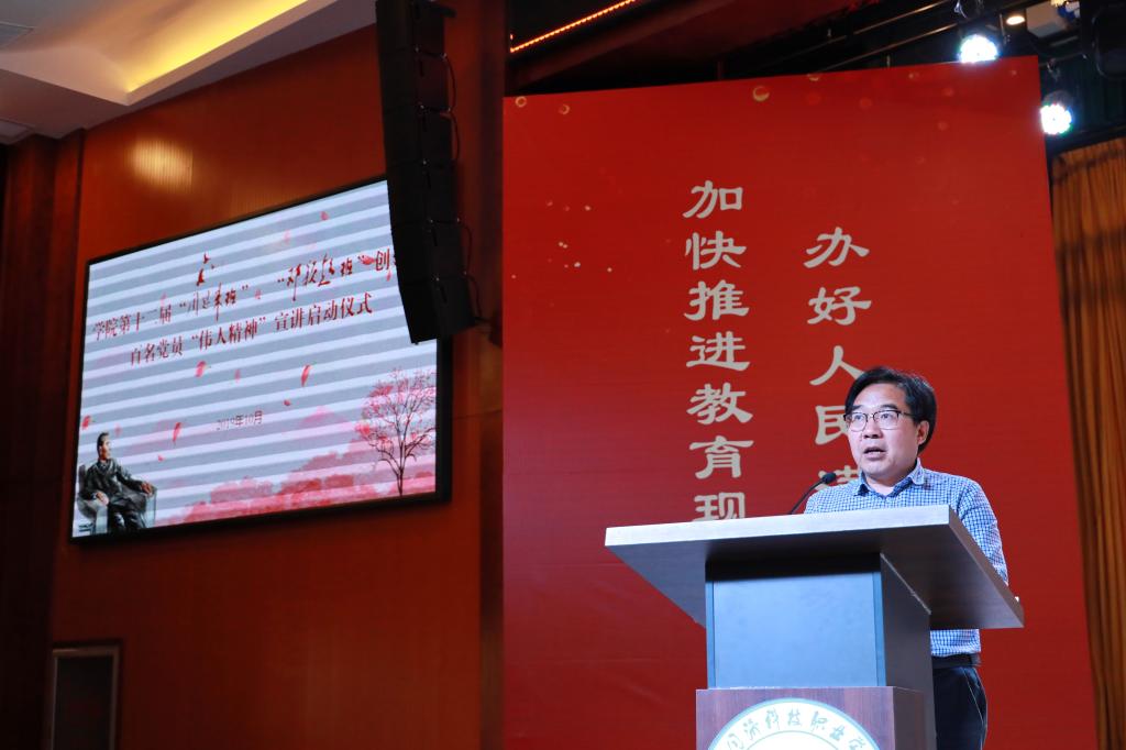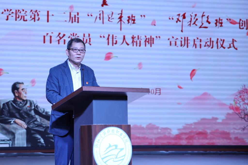 10月30日下午,学院第十二届“周恩来班”、“邓颖超班”创建暨百名党员“伟人精神”宣讲启动仪式在瓯江楼小剧场举行,省委主题教育第十三巡回指导组成员孔笛及全体学院领导出席,学院科以上干部、全体德育老师、教师党员、2019级学生代表共计450多人参加了本次活动。