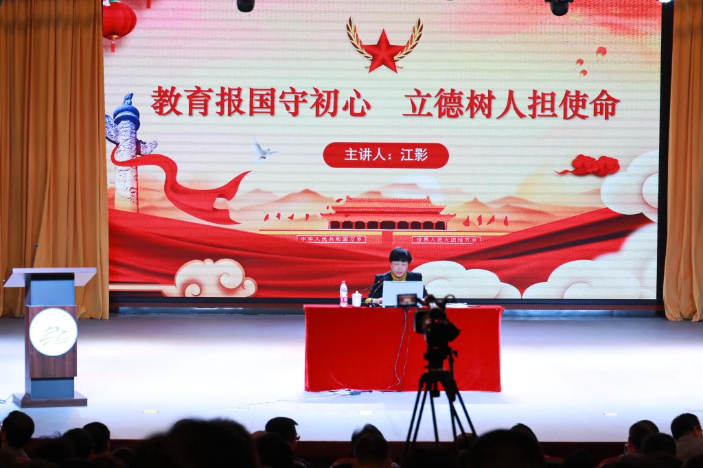江影结合近期主题教育学习和调研情况,基于对初心和使命的理解,围绕学习习近平新时代中国特色社会主义思想的感悟,就如何做到“教育报国守初心,立德树人担使命”,与师生交流了三点体会。