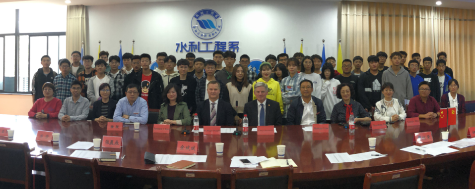 座谈中,梁国钱院长对Heynderickx校长一行的到来表示热烈欢迎,回顾了两校友好合作的历史,高度评价双方为成功举办中美水利工程合作办学项目作出的不懈努力,并表示两校拥有良好的合作基础,在办学理念等方面具有共识,希望今后在教师培训、学生培养、教学模式等方面进一步加强交流,促进双方师生互访,拓宽合作范围,不断提升合作层次。随后,在水利系负责人及相关教师的陪同下,Heynderickx校长一行前往水利系看望水利工程专业中美合作班学生。