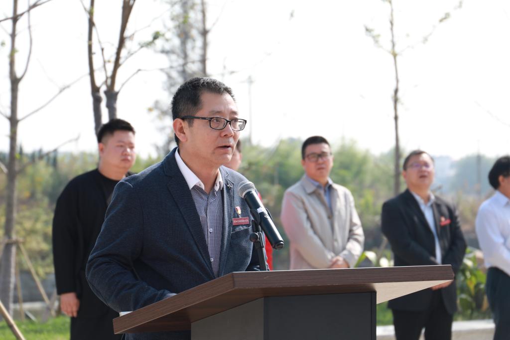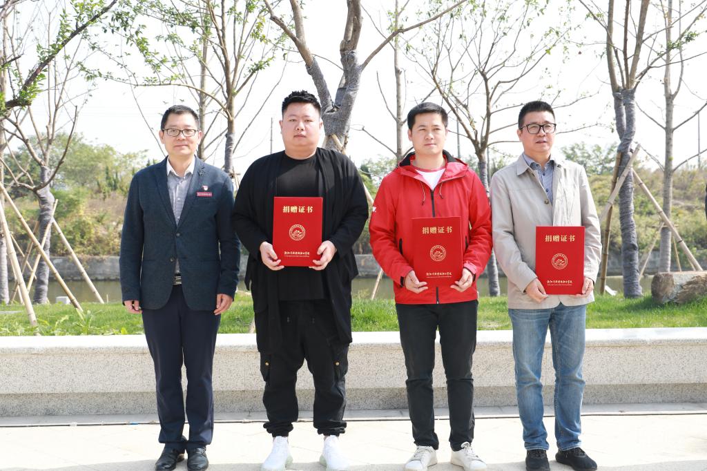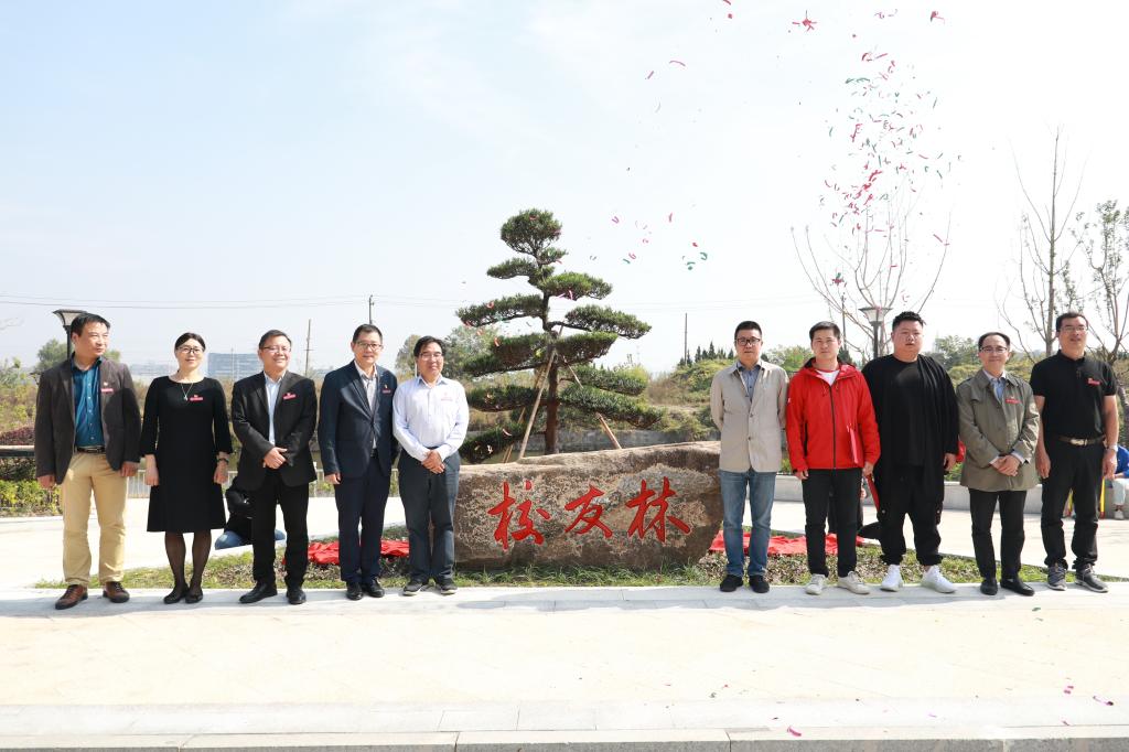 梁国钱院长与校友代表周奇共同为校友林揭牌