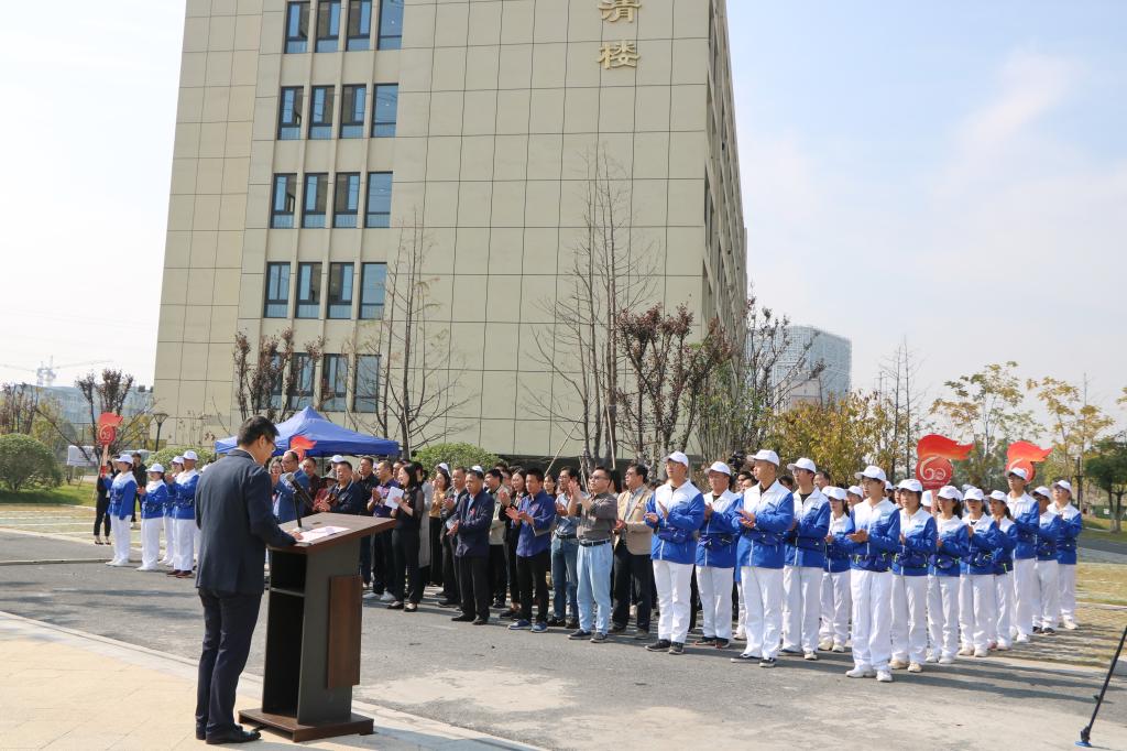 学院志愿者为保证此次校庆顺利、圆满开展,在暖阳下郑重宣誓,接受志愿者队旗。水动86班校友代表,浙江佳能建设有限公司副总经理周奇对母校表达了感恩之情,对学校60周年庆典表示祝贺,为学校师生传递祝福。随后,吴宏平副书记宣布校庆月活动正式启动,院长梁国钱与校友周奇在掌声中共同为校友林揭牌。