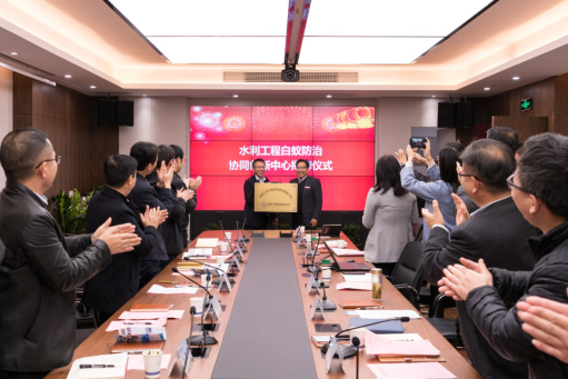 曾令文秘书长和梁国钱院长共同为水利工程白蚁防治协同创新中心揭牌。