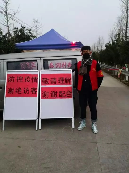 唐江帆同学积极投入到浙江省长兴县洪桥镇的防疫工作中,白天管控洪桥镇中道路路口,晚上巡逻防止人员聚集