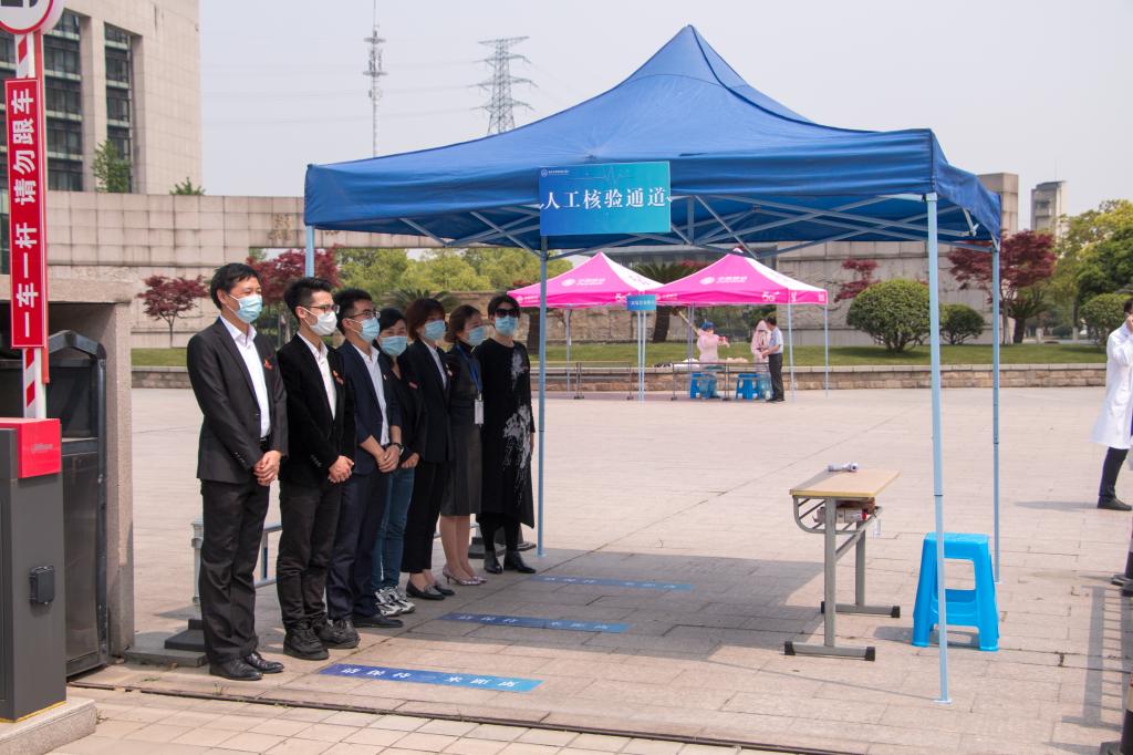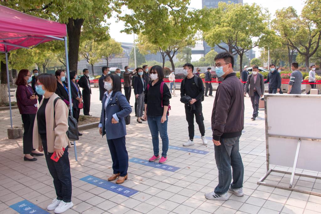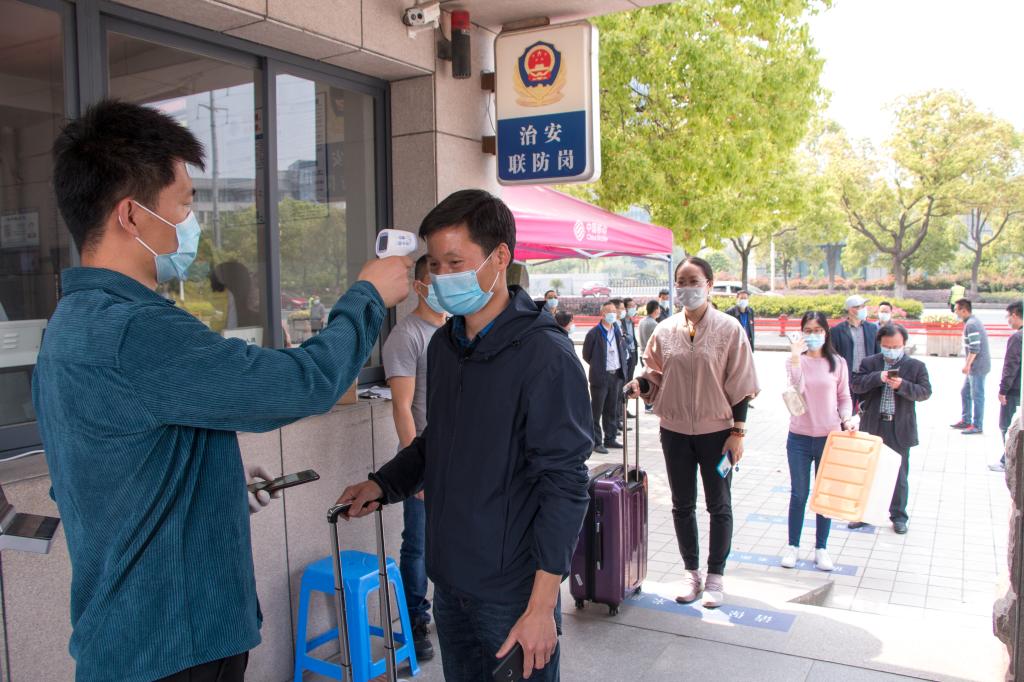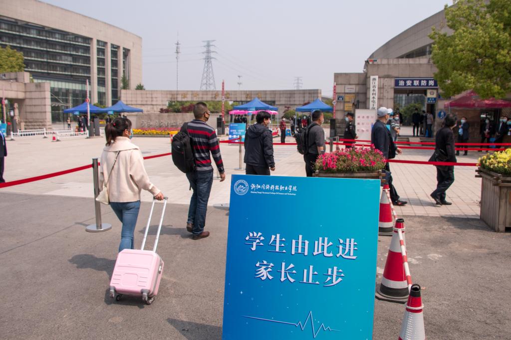 随着学院工作人员亲切的指导,一个个“返校学生”完成了身份、温度识别等各项入校流程,顺利入校。