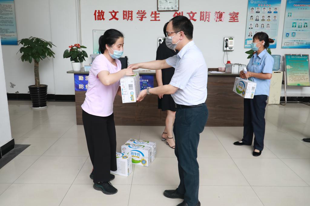 5月15日,学院党委书记江影、院长梁国钱带领院领导班子成员,慰问了疫情发生以来,一直坚守防疫一线岗位、无私奉献的教职员工。院领导们每到一处都与教职工们详细了解防控工作情况,向大家送上学院的关爱和慰问。
