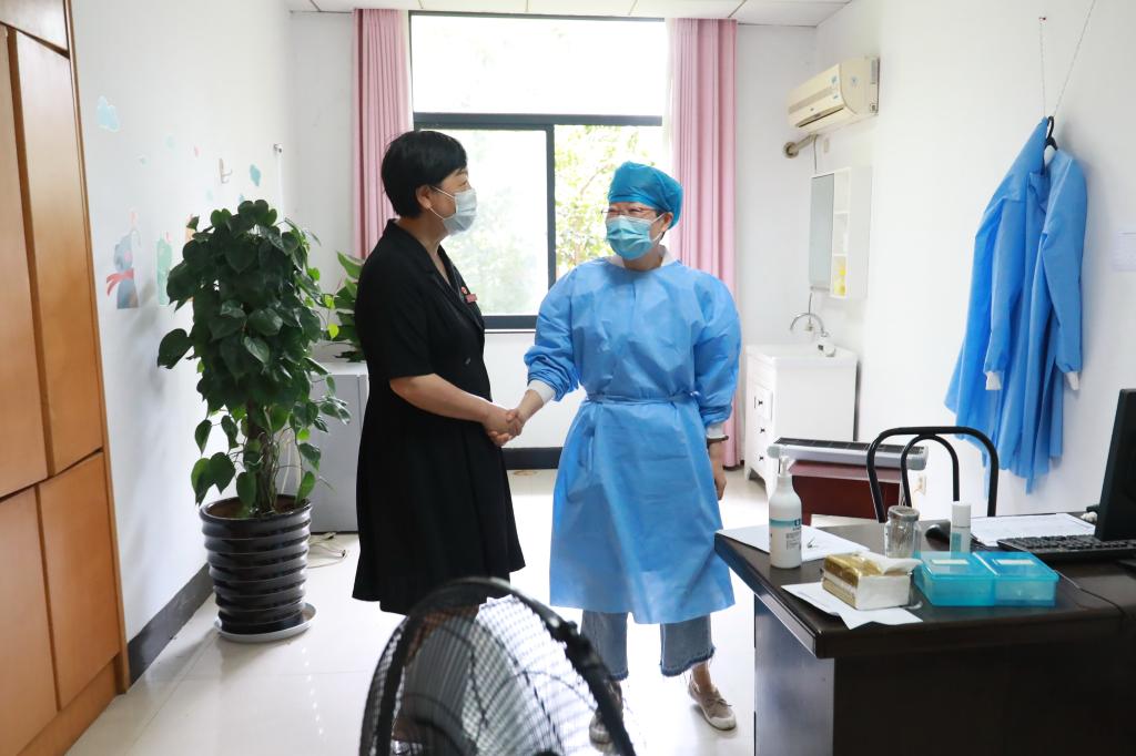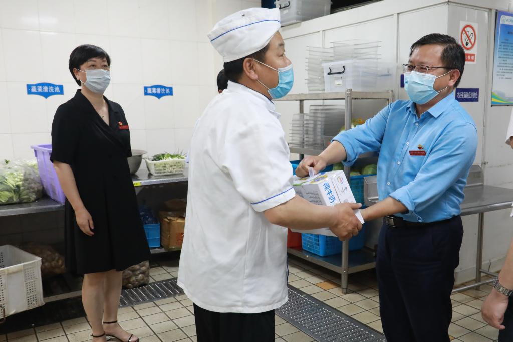在医务室、学生食堂和宿舍区,江影等看望慰问了校医、食堂和宿管人员,给后勤服务的教职工带去学院的关心。她表示,学院顺利完成了学生返校期间工作,这其中后勤部门的教职工加班加点、任劳任怨,做了很多贡献,强调一定要做好学生返校后的健康和食宿管理,加强公共场所消毒等,确保学生在校有一个健康舒心的学习生活环境。