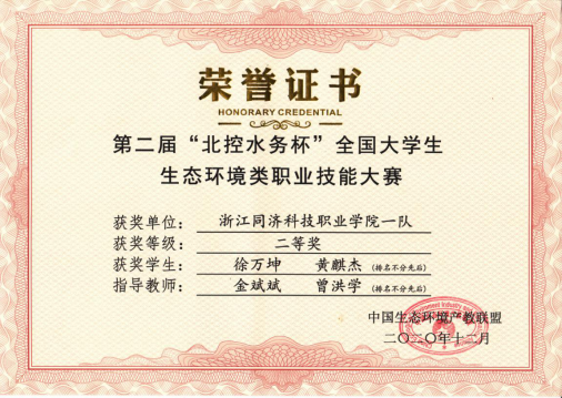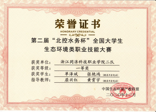 我院本次为首次参赛。水利工程系选派的两支队伍经激烈角逐,脱颖而出,斩获团体一等奖和团体二等奖的好成绩。其中一等奖获得者单泽斌、张艳鸿获得环保名企实习直通车资格,毕业实习结束可签约北控水务集团。