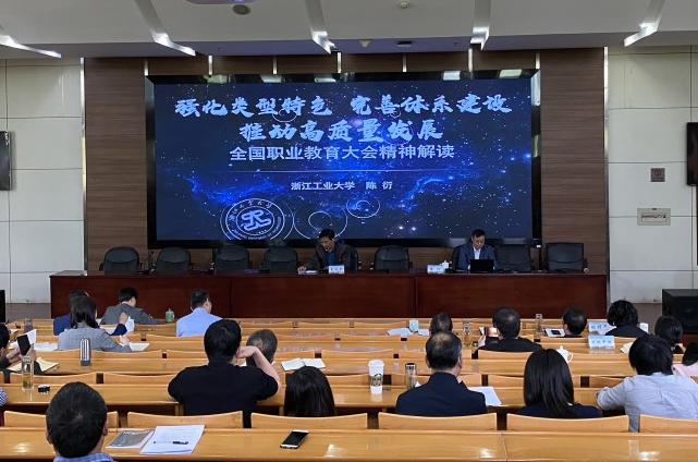 会议传达学习了习近平总书记对职业教育工作作出的重要指示,邀请了浙江工业大学职业技术教育学院、教育科学与技术学院陈衍教授,以《强化类型特色 完善体系建设 推动高质量发展》为题做辅导报告,深入解读了全国职业教育大会精神。