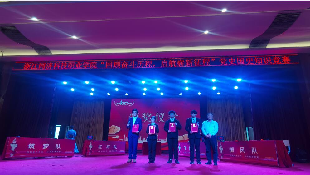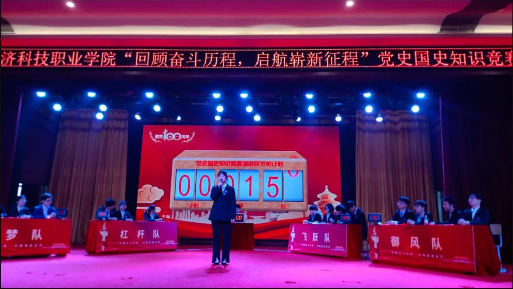为喜迎建党百年华诞,深入学习习近平总书记在党史学习教育动员大会上的重要讲话精神,深化党史、国史教育,切实推动学校党史学习教育相关主题活动,动员全校师生满怀信心投身全面建设社会主义现代化国家的伟大事业,4月28日,由校宣传部、学工部、团委主办,机电工程学院党总支承办的“回顾奋斗历程,启航崭新征程”党史国史知识竞赛决赛在水韵剧场举行。学校副校长沈自力、组织部部长吴玲洪、宣传部部长吴敏启,以及学工部负责人、各二级学院党总支书记、团总支书记及辅导员代表等出席本次比赛。