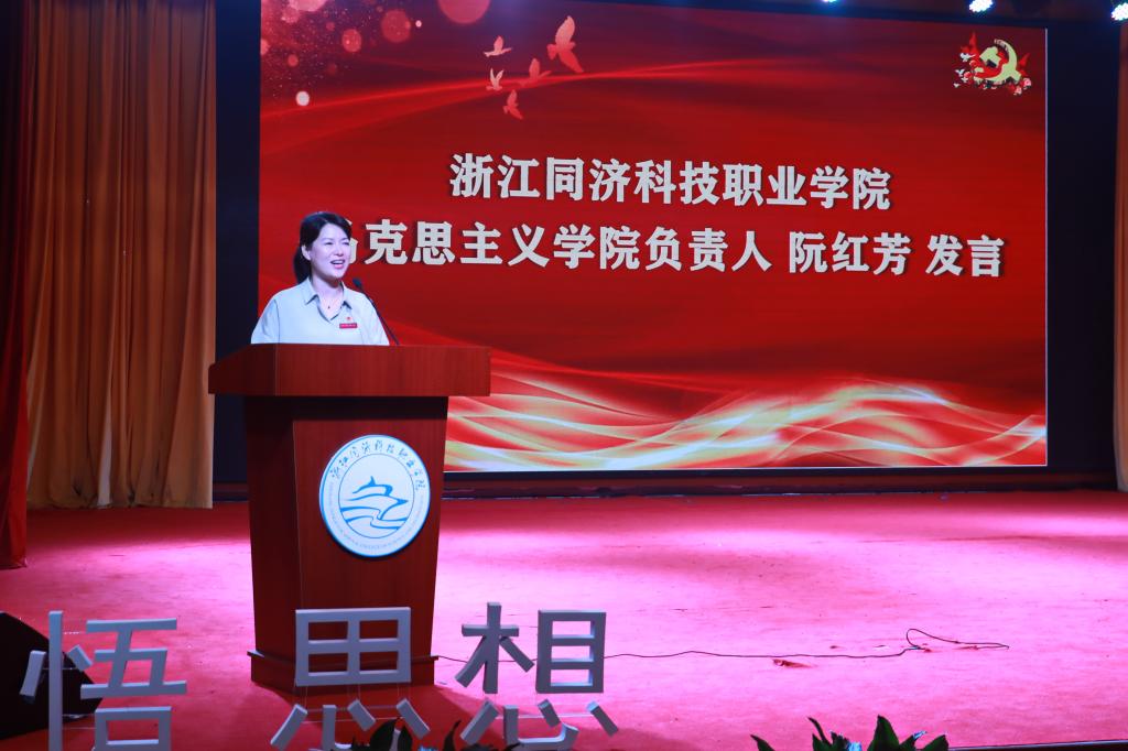 我校马克思主义学院负责人阮红芳在发言中表示,新“同科马院人”必将以习近平新时代中国特色社会主义思想为指导,秉持“厚德守正,求实创新”的院训精神,不断推进思想政治理论课改革创新,奋力开创我校马克思主义学院建设的崭新篇章。