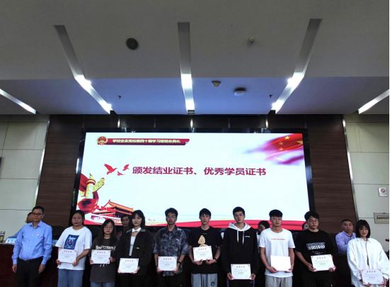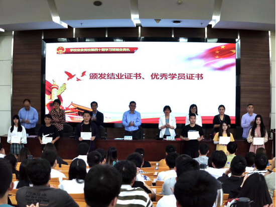 学校党委委员、组织部部长吴玲洪宣读了29名“优秀学员”表彰文件,鼓励他们再接再厉,争取更大的进步;同时勉励其他学员以优秀学员为榜样,以更优异的成绩回馈学校和社会。各二级学院党总支书记为学员代表颁发结业证书,学校党委副书记、副校长吴宏平为优秀学员颁发荣誉证书。