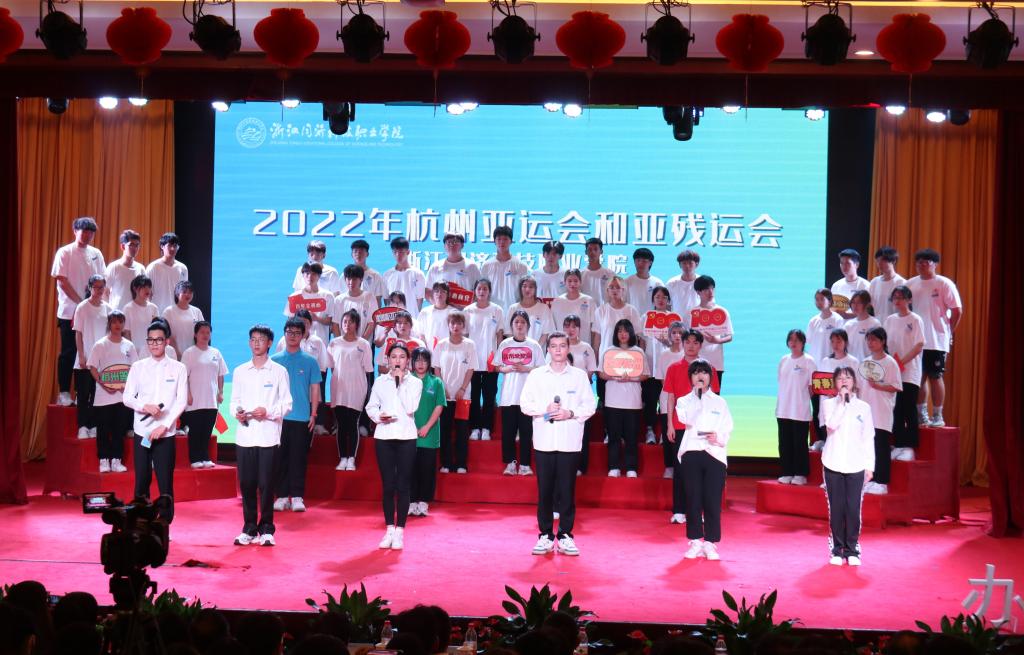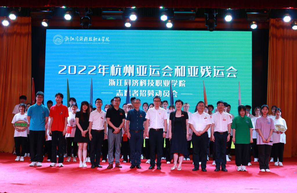 6月11日,2022年杭州亚运会和亚残运会学校志愿者招募动员大会在水韵剧场顺利举行。杭州亚组委志愿者部副部长、杭州团市委副书记周妙荣,杭州亚组委志愿者部招募配岗处主任盛晓晶、学校党委书记江影,学校党委副书记、副校长吴宏平,学校党委委员、副校长沈自力,学校党委委员、宣传部部长吴敏启出席活动,各相关部门负责人、各二级学院党总支书记、辅导员以及学生代表300多人参加。