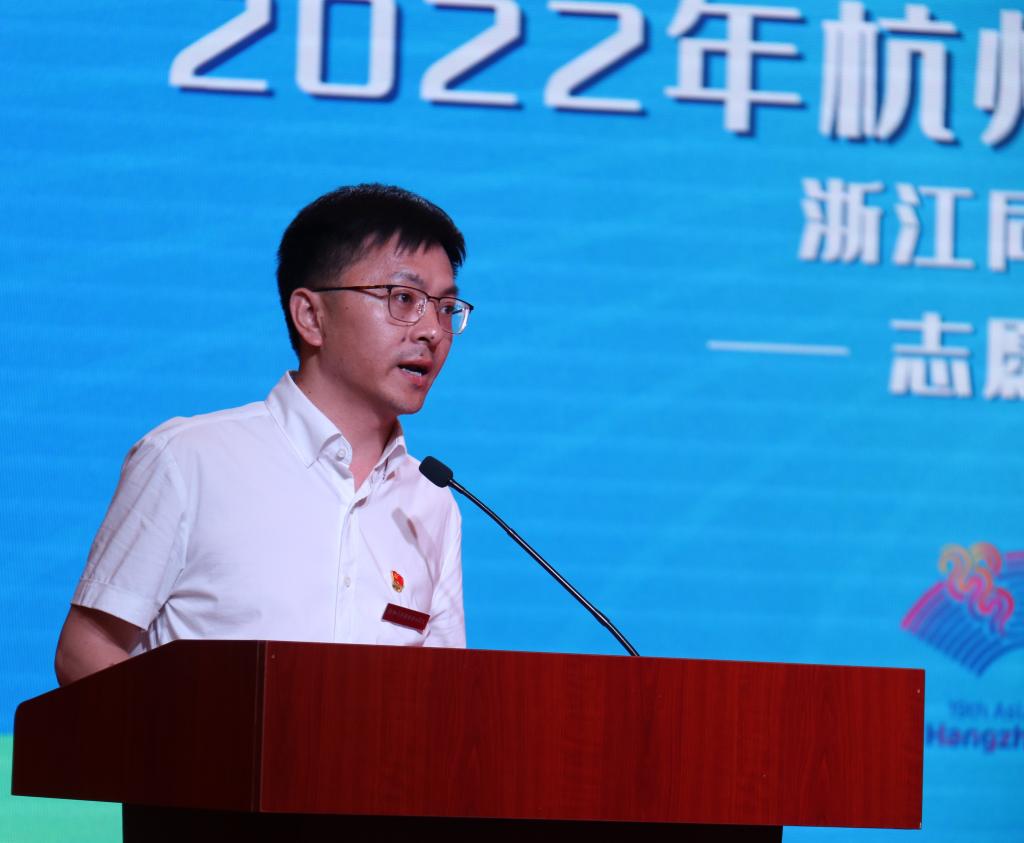 动员会上,亚组委志愿者部招募配岗处主任盛晓晶介绍了亚运会志愿服务基本情况,对此次杭州亚运会和亚残运会志愿者招募数量、服务时间、工作标准等作了说明。随后与会师生一同观看了《杭州亚运会志愿者招募宣传片》,随后学校学工部部长、团委书记周恺和学校场馆志愿者经理代表石杨分别进行报名流程介绍和宣誓。