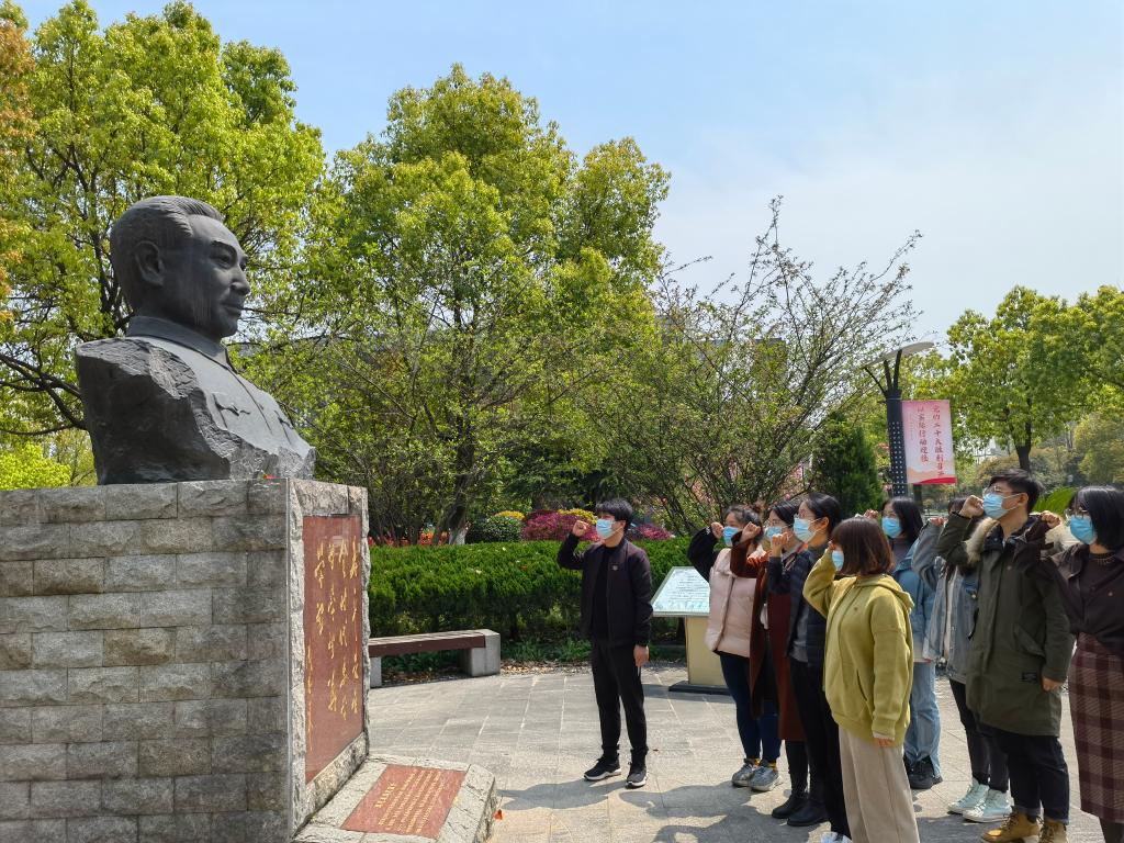 4月2日,学生党支部教师党员在学校周恩来总理铜像前肃立默哀,重温入党誓词,怀着无比崇敬的心情,表达对革命先烈的深切缅怀和无尽哀思。支部书记黄君指出,要从党史学习教育中汲取智慧和力量,脚踏实地、俯下身子为学生、为群众多干实事、多做好事。