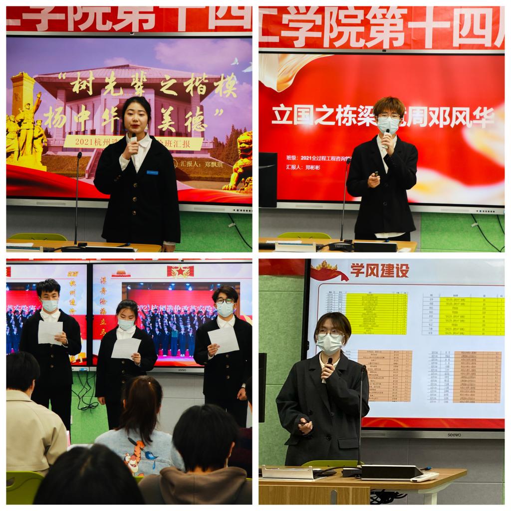 本次汇报会中,评委老师对班级汇报、创建考核测评分以及申报材料进行综合打分,最终2021杭州造价改革实验班荣获一等奖,2021全过程工程咨询管理改革实验班、造价2101荣获二等奖,造价2104、市政2102、工管2102荣获三等奖。