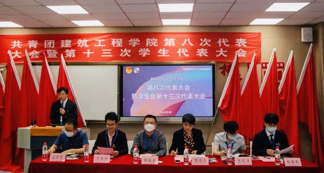5月23日,在中国共产主义青年团迎来成立100周年、全党全国各族人民喜迎党的二十大之际,在学校全力推进“十四五”建设关键时期,共青团建筑工程学院第八次代表大会、学生委员会第十三次代表大会开幕。建筑工程学院院长杨海平、党总支书记蒋晓冬、副院长陈乾浩、党总支副书记石彦军、校团委副书记傅鑫杰以及校学生会主席团代表、兄弟学院团总支书记、学生骨干代表出席了本次会议。来自全院111名学生正式代表和10名列席代表参加本次会议。会议由大会执行主席肖德彬老师主持。