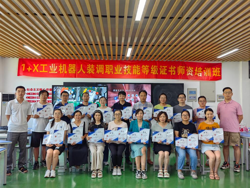 此次培训得到了学校领导的关心支持和后勤等部门的大力配合,全部参培教师完成了本次培训和认证,并通过了中级考核师认证考核。通过本次培训,沈阳新松机器人有限公司将进一步与机电学院在产业学院、“1+X”证书等方面开展深度合作,机电学院教师对“1+X”证书制度、工业机器人装调职业技能等级标准、教学、培训与考核等要求有了更深的理解,有助于培养一支具有先进的职业教育理念,掌握先进技术技能的高素质工业机器人装调职业技能等级证书的教学团队,保障证书教学和培训的质量。