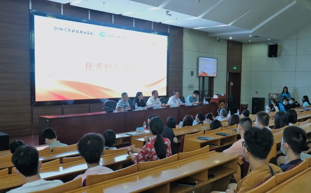 优秀校友浙江水欣集团股份有限公司董事长蒋文龙向学弟学妹们讲述了他从事水利行业40余年的深刻感悟,希望新生们能够继续传承水利人不怕苦、不怕累精神。