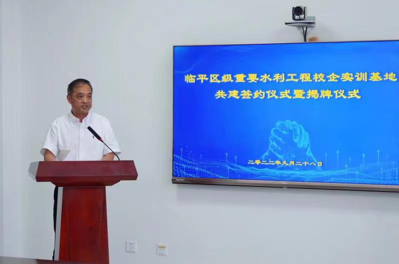为贯彻落实习近平总书记对职业教育工作作出的重要指示精神,进一步深化校企合作,探索“产学研”结合新路径,培育更多水利优秀技能、技术人才,9月28日,临平区区级重要水利工程校企合作实训基地在菜籽河东闸站正式揭牌。杭州市林业水利局水旱灾害防御与运行管理处处长孙映宏,区农业农村局(林业水利局)党委委员、副局长张云超,区交通集团有限公司党委委员、副总经理陈潜,浙江江能建设有限公司副总经理徐海波参加仪式,机电工程学院党总支书记、院长金永琪应邀在仪式上发言。