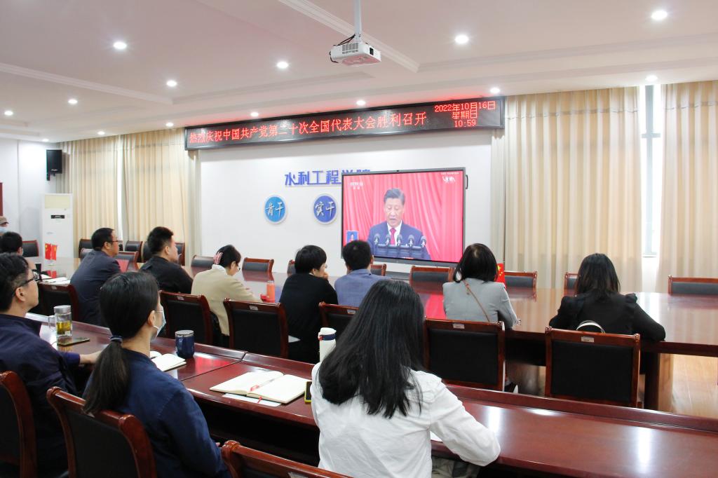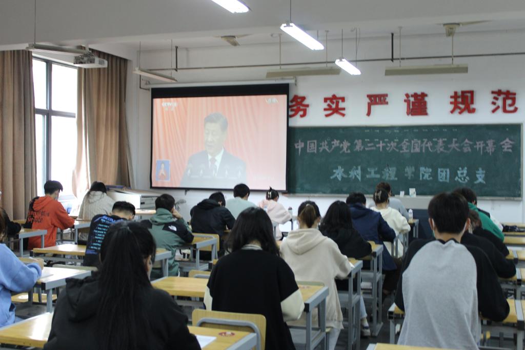 10月16日上午,中国共产党第二十次全国代表大会在北京人民大会堂隆重开幕,习近平总书记代表第十九届中央委员会向大会作了重要报告。水利工程学院根据疫情防控要求,组织学院全体党员师生、入党积极分子、学生干部、在校学生分别集中收看了中国共产党第二十次全国代表大会直播盛况。在认真聆听习近平总书记的报告后,广大党员师生备受振奋,反响热烈。