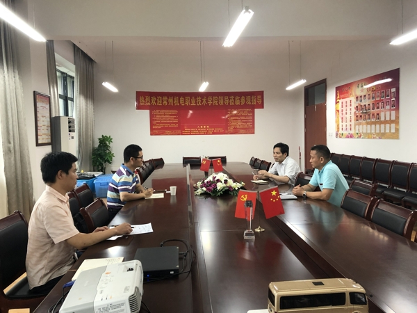 6月29日下午,常州机电职业技术学院模具技术学院副院长王霆赴机电系调研,本次调研主要针对机电一体化专业师资培养、专业建设、实训条件、招生就业等相关内容。机电系主任方捷接待了王院长。