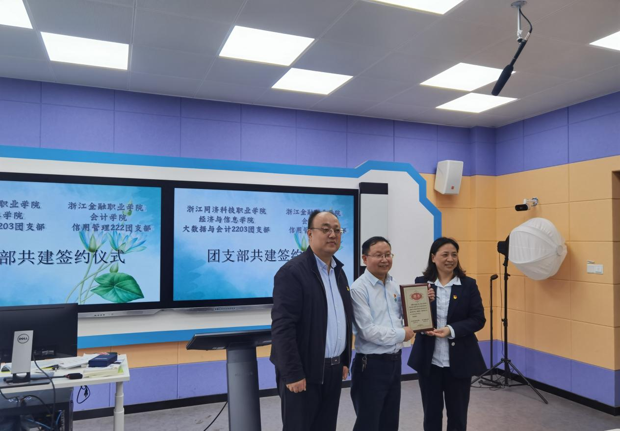 11月9日下午,经济与信息学院大数据与会计2203团支部和浙江金融职业学院会计学院信用管理222团支部在B319开展了校校团支部共建签约活动。经信学院党总支副书记王志远,浙江金融职业学院会计学院党总支副书记张惠君及双方团总支书记、班主任和学生代表参加了此次活动。