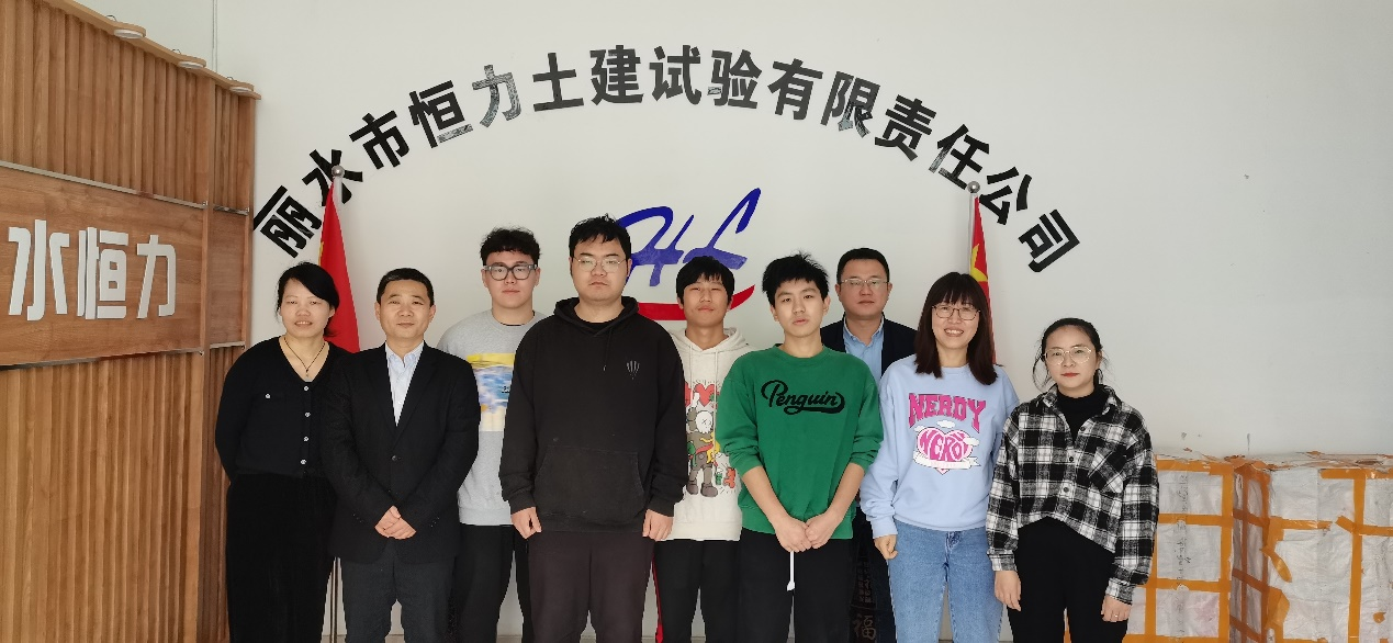 与丽水市恒力土建试验有限责任公司实习学生合影