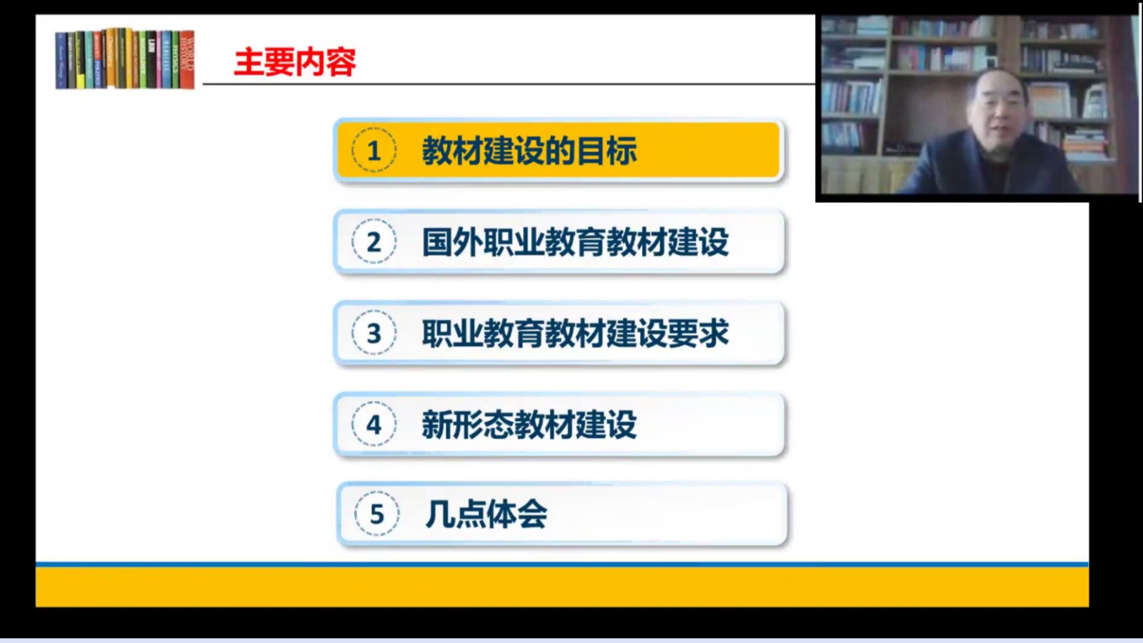 此次专题报告会郭教授首先指出,教材是职教20条中“三教(教师、教材、教法)”改革中重要性仅次于教师的关键要素,是教师从教的基本依据。报告中郭教授从教材建设的目标、国外职业教育教材建设、职业教育教材建设要求、新形态教材建设和教材建设体会等5个方面,全方位介绍了建设高职教材的要点,报告中展现出来的丰富教材资源充分体现了郭教授深厚的专业积累。整场报告深入浅出,信息量大,让线上聆听的一百多位教师受益匪浅,充分拓展了大家的视野,为今后建设开发教材提供了有力的指导!