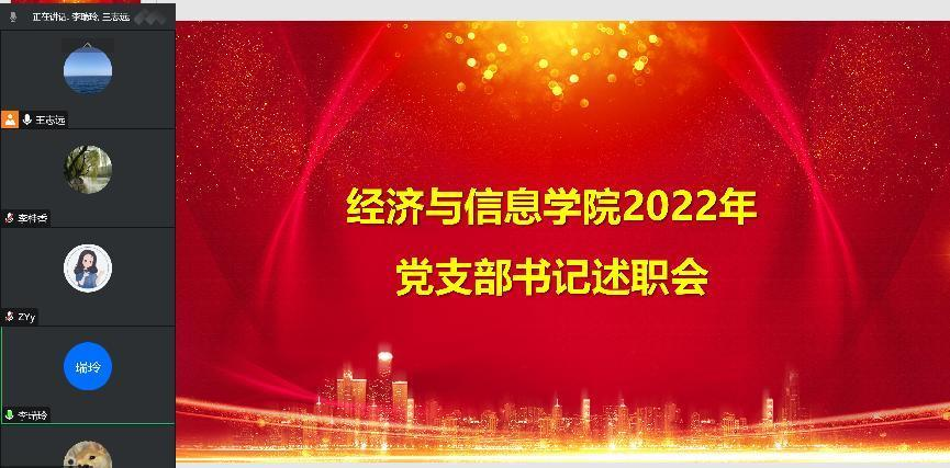 为进一步压紧压实党支部书记抓党建主体责任,推动全面从严治党向纵深发展,12月23日,经信学院党总支召开2022年度党支部书记述职会,会议由学院党总支副书记王志远主持。