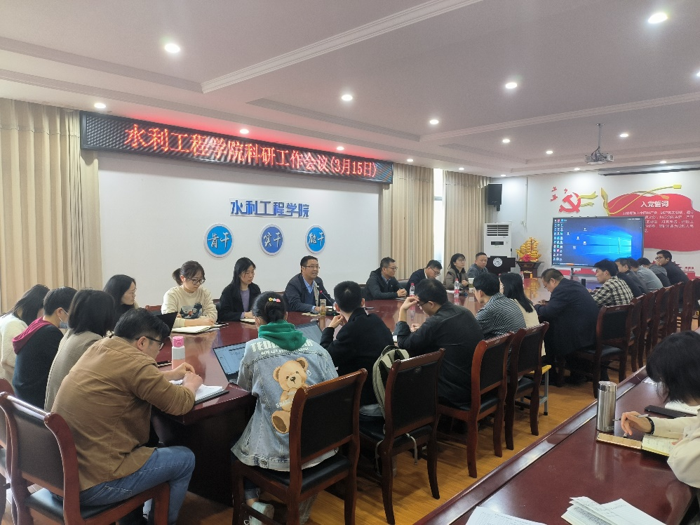 3月15日下午,水利工程学院在A319会议室召开科研工作专题会议。学校党委副书记、副校长吴宏平,科研处处长出席会议。会议由水利工程学院院长主持,校科研处科研负责人及学院全体教职工参加。