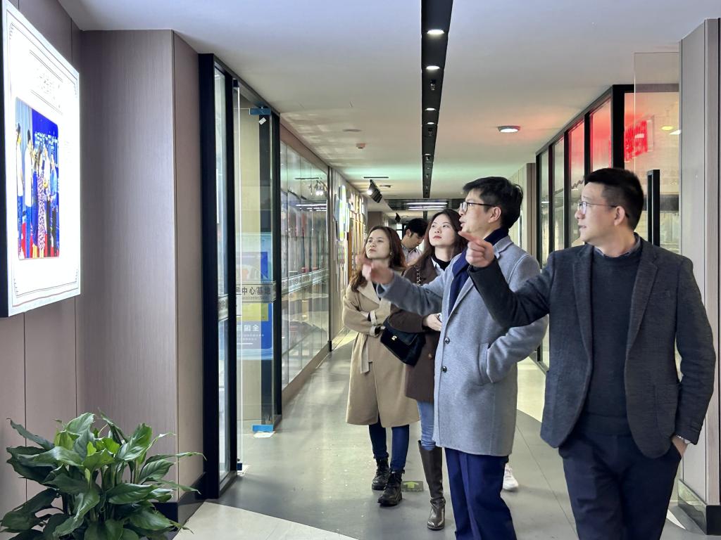 随后,一行人赴浙江机电技师学院电商学院交流学习。院长蔡呈祥带队参观了电商产业服务中心基地,并就学院课程设置、人才培养、实训室建设、校企合作等方面作了介绍。