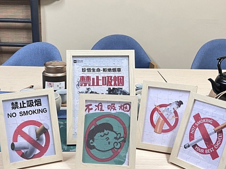 活动伊始,金融2201张思涵向大家介绍了吸烟的危害性,呼吁各位同学从自身做起,相互监督,摒弃抽烟陋习,创建无烟校园。随后,同学们通过拼“禁烟”标识拼图、设计“禁烟”标语等活动,了解到吸烟的危害、成瘾的原因以及戒烟的方法,意识到禁烟的重要性。