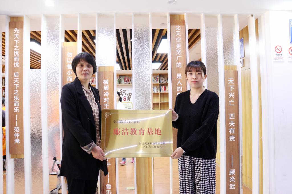 活动后,为深化落实“清廉同科”建设,推动校社共建,党风政风与社风民风互促共进,建工学院党总支书记蒋晓冬与鸿宁社区副书记张嘉琦一同为“廉洁教育基地”举行揭牌仪式,双方就廉洁文化建设、党群服务中心发展、志愿服务等工作开展了深入的交流。