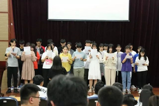 参加此次比赛的共有八个班级组成的八支队伍,经过角逐,将选出四支队伍重组为两支队伍参加学院的“红五月”大合唱比赛。各班级经过认真筹备,带着各自的自选参赛曲目在报告厅闪亮登场。