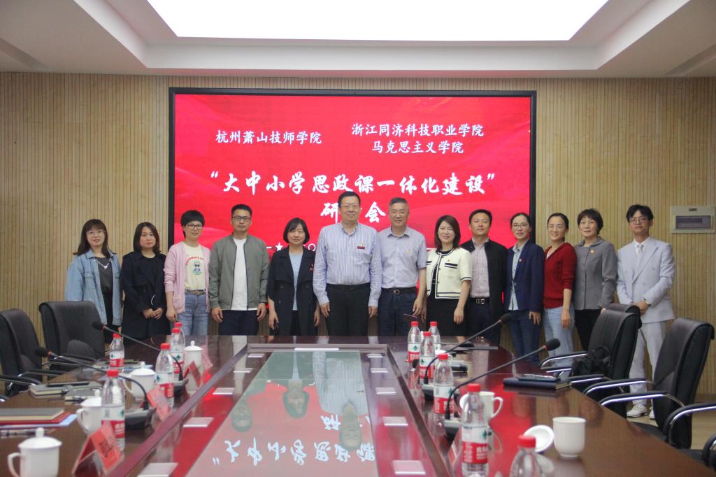 为积极落实中宣部、教育部等十部门《全面推进“大思政课”建设的工作方案》和教育部办公厅《关于开展大中小学思政课一体化共同体建设的通知》等文件精神,完善高校与中小学协同共建思政课建设长效机制,5月24日下午,马克思主义学院与杭州萧山技师学院召开了“大中小学思政课一体化”建设研讨会。杭州萧山技师学院校党委书记王尧林,教务处、基础部负责人等一行5人来马克思主义学院交流研讨,学校党委书记张勇,党委委员、组织部部长吴玲洪,马克思主义学院班子成员、教研室主任以及骨干教师参加此次会议。
