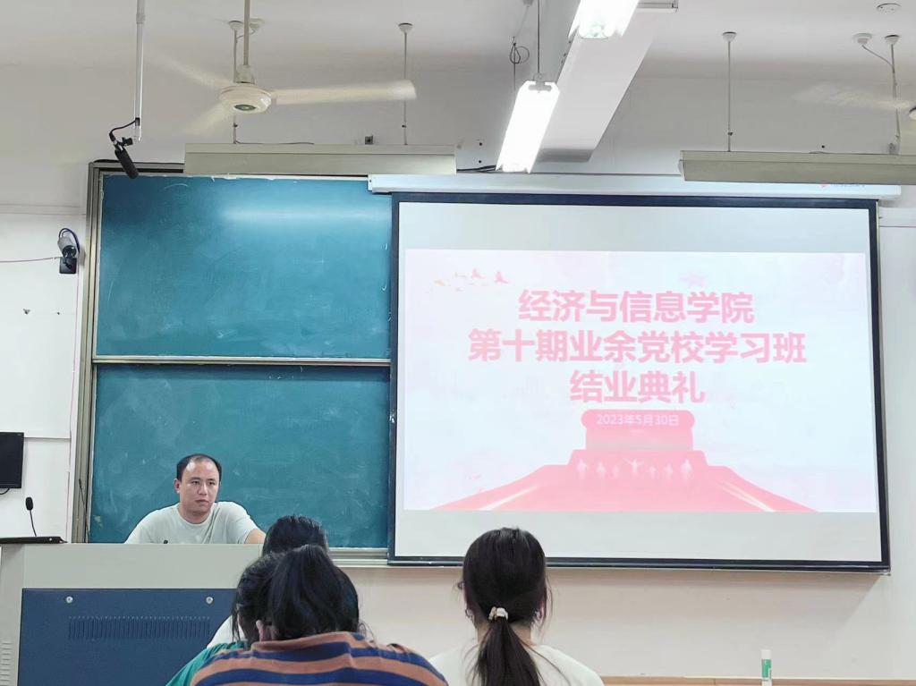 为学习贯彻落实党的二十大精神,引导青年学子学习习近平新时代中国特色社会主义思想,5月30日,经济与信息学院第10期业余党校结业典礼在B303教室举行。结业典礼由思政辅导员祝锐主持,业余党校58名学员参加了典礼。