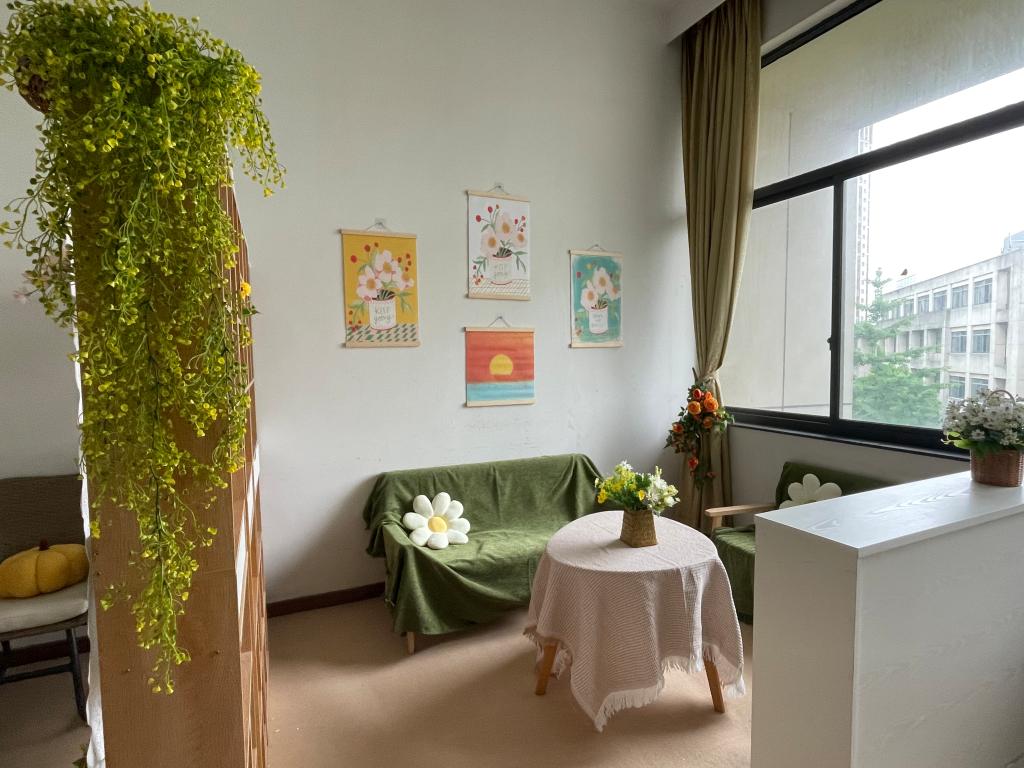 近日,艺术设计学院谈心谈话室建成并投入使用。沙发、绿植、精美的装饰,窗明几净的绿色心情工作室洋溢着轻松的氛围。