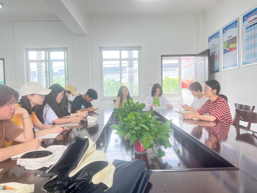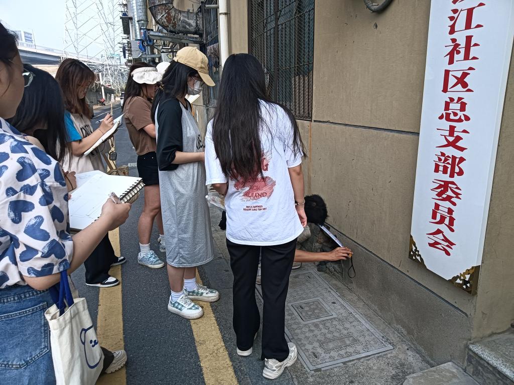 活动中,艺术设计学院学工办主任范芷毓带领建设、园林、环艺三个专业的学生代表前往钱江社区,对社区门匾进行尺寸测量。测量后,同学们与钱江社区方舒书记、冯国琴委员进行深入交流,方舒书记认真为同学们介绍了社区的历史发展及当前现状,并提出了对“改新匾”的设计要求。