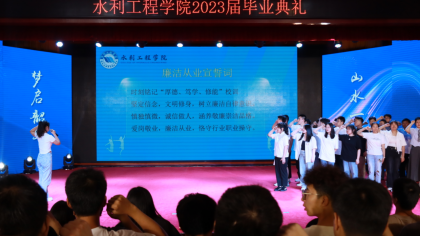 毕业不是终点,而是勇攀高峰的新起点。6月16日,水利工程学院党政负责人、各专业部主任、毕业班班主任、全体辅导员与2023届毕业生共聚一堂,在水韵剧场隆重举行学院2023届毕业典礼。毕业典礼由学院党总支副书记石杨主持。