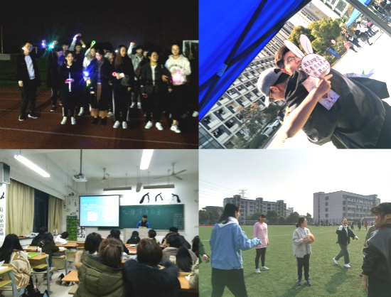 在校各班级开展“三个一”活动,即“召开一个主题班会、组织一次集体活动、开展一项体育锻炼”。在心理健康主题的班会中,班级同学通过讨论的方式进行分享各自的心理体验和观念。17级各班级还开展了多项丰富多彩的课外活动及体育锻炼,例如数媒1701班的“荧光夜跑”、 圣都班的“迈克尔遇上孔子”、 园林1702 的“春日暖阳排球锻炼”、园林1701班的“忆四个昼夜”等,以引领学生借此系列活动放松心情、强健体魄、体验快乐。
