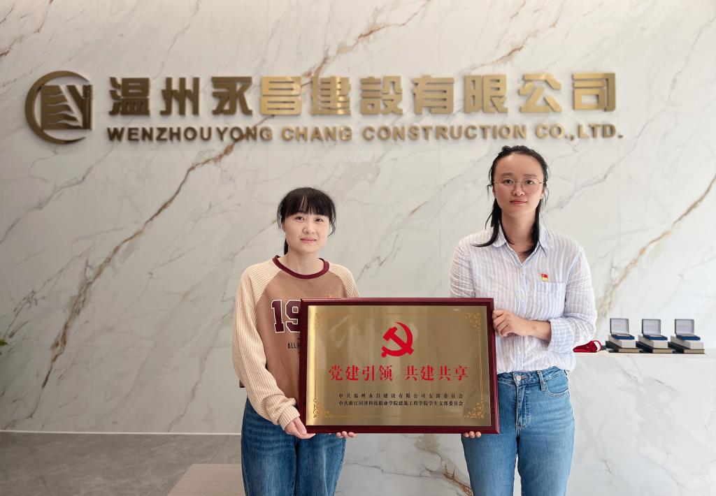 会后,双方进行了校友实习基地挂牌仪式,学生党支部与温州永昌建设有限公司党支部签订了党建共建结对协议。未来双方将积极发挥各自优势,整合各方资源,共同开创“产教融合、校企双赢”新局面,形成“党建引领聚合力,共建共享谋发展”新格局。
