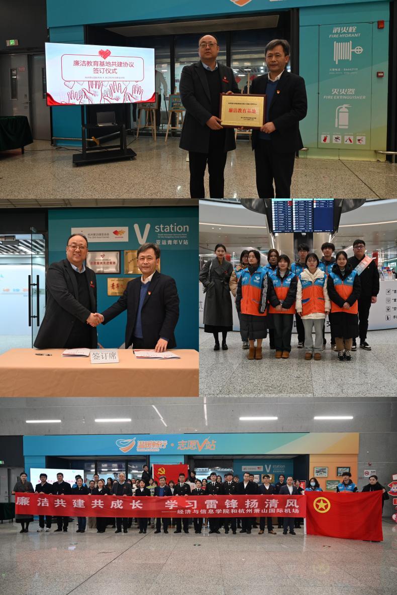 为了落实习近平总书记关于新时代廉洁文化建设的重要论述,深入推进新时代廉洁文化建设,探索校企廉洁教育新路径,进一步厚植校园廉洁文化土壤。3月5日上午,经济与信息学院与杭州萧山国际机场有限公司场区管理中心举行廉洁教育共同体签约仪式。杭州萧山国际机场有限公司纪委书记姜盈隽莅临现场指导,萧山机场海关、校企青年志愿者等参加了本次活动。