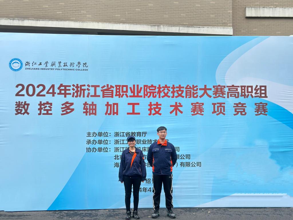 4月13日,2024年浙江省职业院校技能大赛高职组“数控多轴加工技术”赛项在浙江工业职业技术学院落下帷幕。学校机电工程学院数控技术专业的黄俞淇老师和数控教育改革试点班2203班的丁应国同学表现卓越,师生同赛荣获二等奖(第六名)。