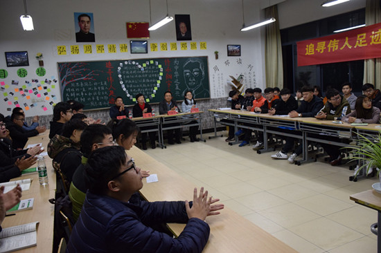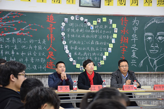 1月2日,水利系水利1701班在水利机电楼A304教室举行争创“周恩来班”、“邓颖超班”启动仪式暨“师生面对面”座谈会交流活动,学院党委书记江影,水利系副主任刘进宝、系党总支副书记罗文、辅导员代表以及水利1701班全体学生参加了此次活动。该活动由辅导员韩丹丹老师主持。
