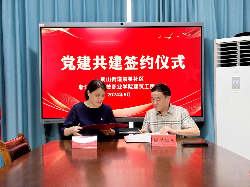 签约仪式上,双方详细介绍了各自党支部情况,深入探讨了下一步合作方向。蔡正良书记充分肯定了亚运会期间建筑工程学院志愿者的表现,希望接下来能通过健全机制,提升党建共建层次和领域,实现优势互补、共建共享,着重助推形成活动共办、项目共建、服务共推的党建新局面。蒋晓冬书记感谢社区对学院工作的支持与帮助,希望以此次党建共建为契机,充分利用彼此资源优势,深度融合,强化社区与学校协同育人,为教育实践赋能,为基层治理和学校高质量发展添砖加瓦。