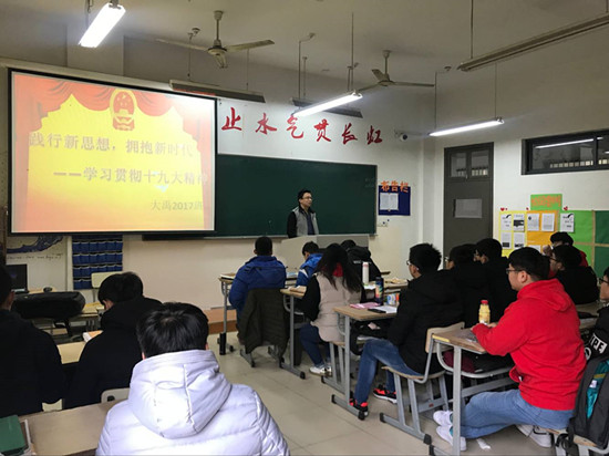 2017年12月27日上午十点整,大禹2017班团支部在水利机电楼A204展开了“践行新思想,拥抱新时代——贯彻学习党的十九大精神”主题活动。本次活动除大禹2017全体同学参加外,还很荣幸的邀请到了水利系思政辅导员张峰老师。