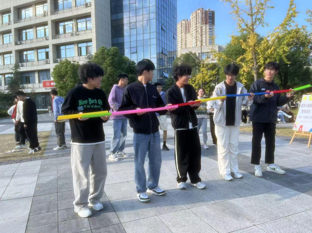 活动设置了三项兼具趣味性与挑战性的比赛项目,考验技巧与协同的“合力建塔”,考验灵活与耐力的“协作跳绳”,考验精准与配合的“乒球接龙”,同学们热情参与,广场上各个项目都排起了长队。这些项目在考验同学们协调能力的同时,更培养了大家的团队协作精神以及对策略技巧的运用。共有以寝室或班级为单位组成的35支队伍参与了比赛,在充满活力与激情的广场上,洋溢着大家的欢声笑语,同学们全情投入,展现出了极高的热情和团队荣誉感。