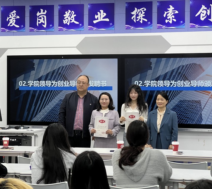 徐宜宜在开班致辞中指出,习近平总书记给中国国际大学生创新大赛参赛学生代表的回信为广大青年学子指明了奋斗方向,激励着每一位青年学子在科技创新的征程上坚定前行。她希望学员们能够珍惜难得的学习机会,虚心向老师、导师、校友和身边优秀的同学学习,认真完成好启航班教学、实践、竞赛等日常安排,在双创实践的大平台中不断完善自我,积累经验,发掘潜能,提升素养。移动商务2301班李都作为上一届启航班优秀学员代表上台发言,他表示能够在层层选拔中脱颖而出,成为启航班的一份子,既是一份荣誉,更是一份责任和传承。希望各位学员能用自己的实际行动去践行创业者的使命,为学校争光,为社会添彩。最后,学院院长景秀眉,学院党总支书记王志远为经信学院创业导师颁发聘书,并对受聘的创业导师表示热烈祝贺,希望在各位导师的指导下,持续推动学院创新创业工作不断发展,在各类创新创业大赛中取得优异成绩。